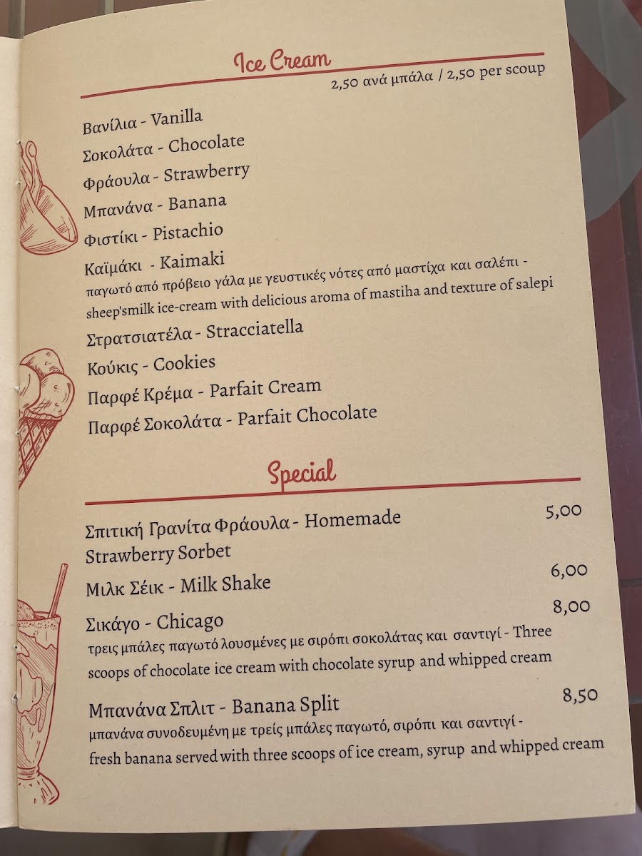- Fresh Treats: For something lighter, the fresh fruit salad (€5) and yoghurt with honey (€5) are delightful choices.